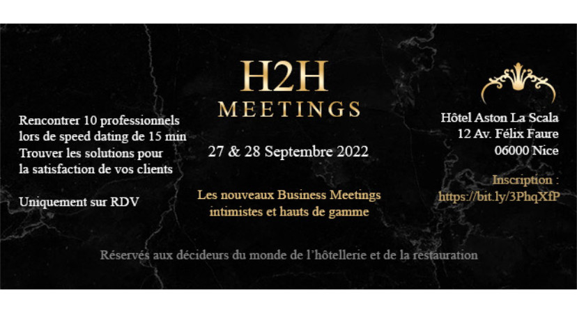 Bravo et merci aux organisateurs pour cette 1ère édition du H2H Meetings, rencontres professionnelles intimistes et haut de gamme !