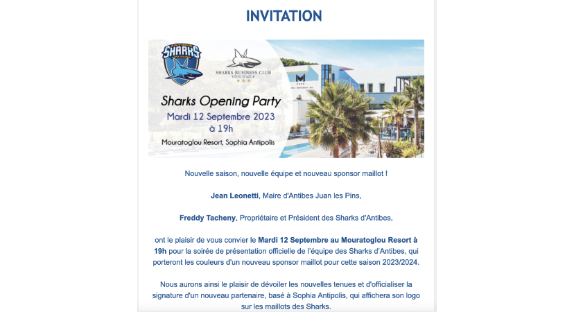 Ravie d’avoir été associée à cette belle soirée pour la présentation officielle de l’équipe des Sharks d’Antibes dans les jardins magnifiques du Mouratoglou Resort.