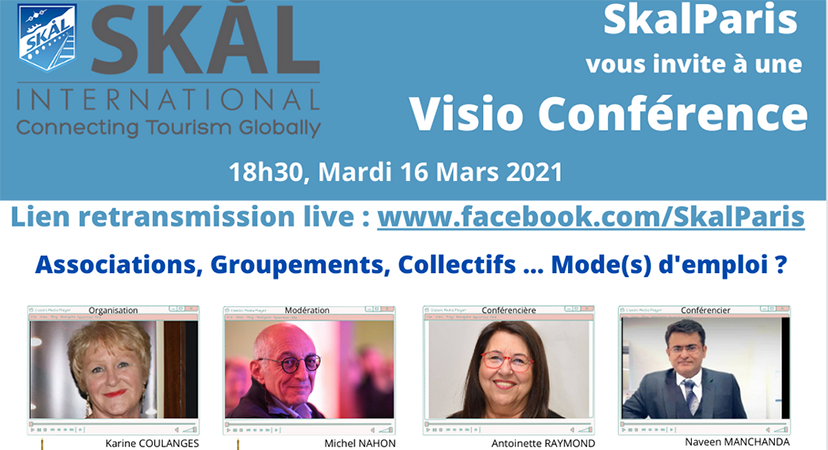 Le mardi 16 mars, Nicolle Martin et plusieurs skallègues du Club de la Côte d’Azur ont participé au webinaire organisé par le Skal international de Paris. Cette visioconférence a réuni les personnalités charismatiques de la profession en témoignant de la complémentarité des différentes associations représentant le monde du voyage et du transport ainsi que le rôle du Skal International. Occasion de revenir sur les problématiques que vit le monde du tourisme en cette période de pandémie. Merci au Skal international de Paris pour cette initiative.